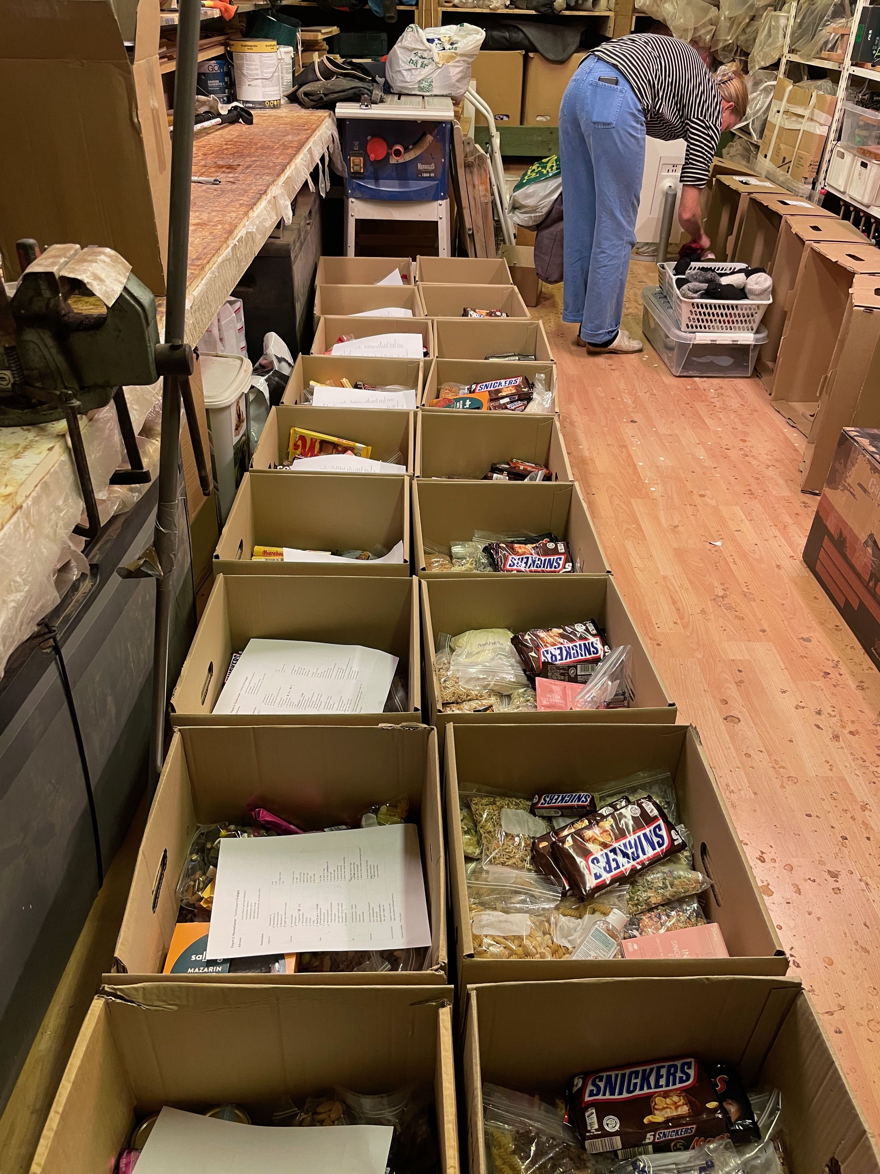 Depotkasser fulde af mad pakket og klar!