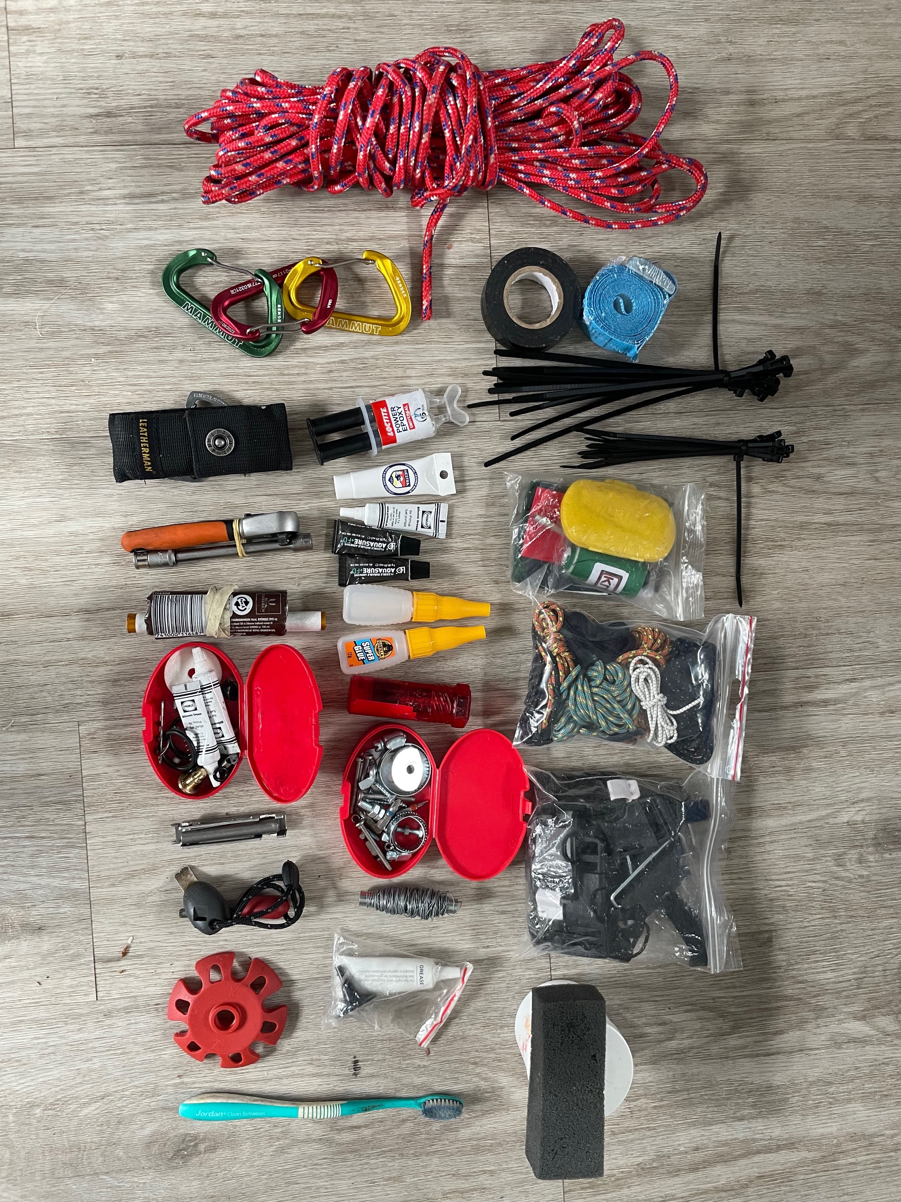 Her er et bud på et reparationssæt, men se på dit udstyr, og overvej hvad du har brug for hvis det går i stykker.