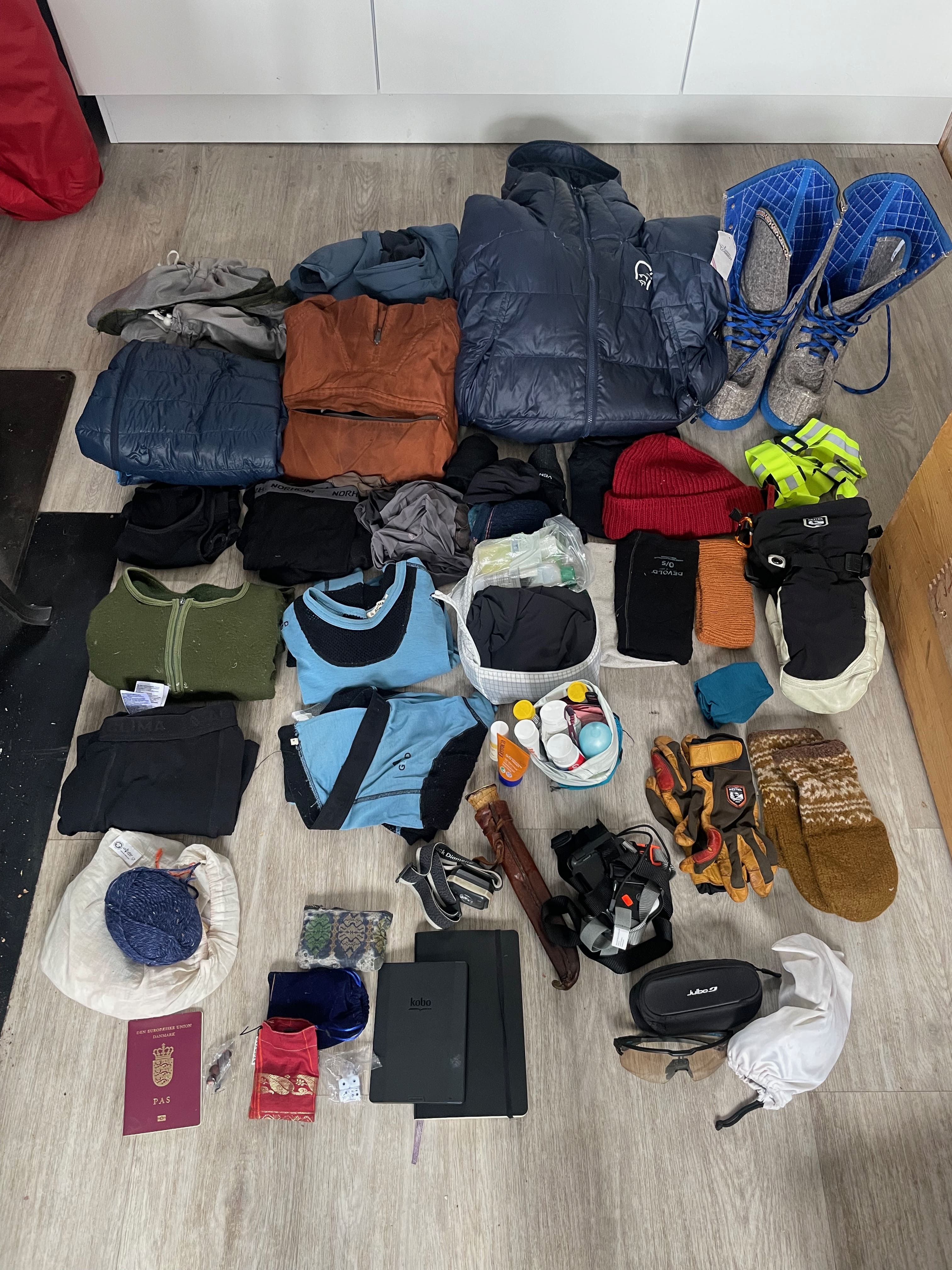 Overordnet havde vi valgt at tage et sæt tøj med til at gå i: inder-, mellem- og yderlag. Et ekstra lag til lejr, og et skift til inderste lag.
